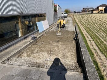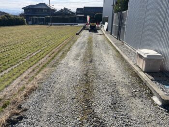 現在は砕石を敷き詰めている状態で毎年夏場になると草刈りが大変なのでその労力を解消するための工事です。
