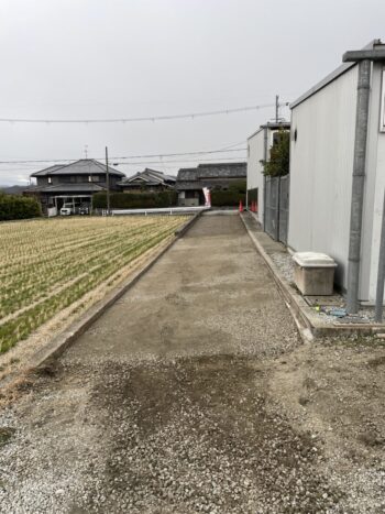 建物の裏にある駐車場までのアプローチ部分の舗装工事となります。