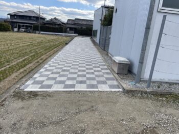 今回のようにインターロッキングで仕上げるのもありますしコンクリートやアスファルト、タイルや板石といったような貼物で仕上げる場合もあります。